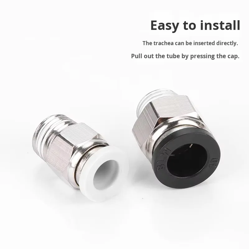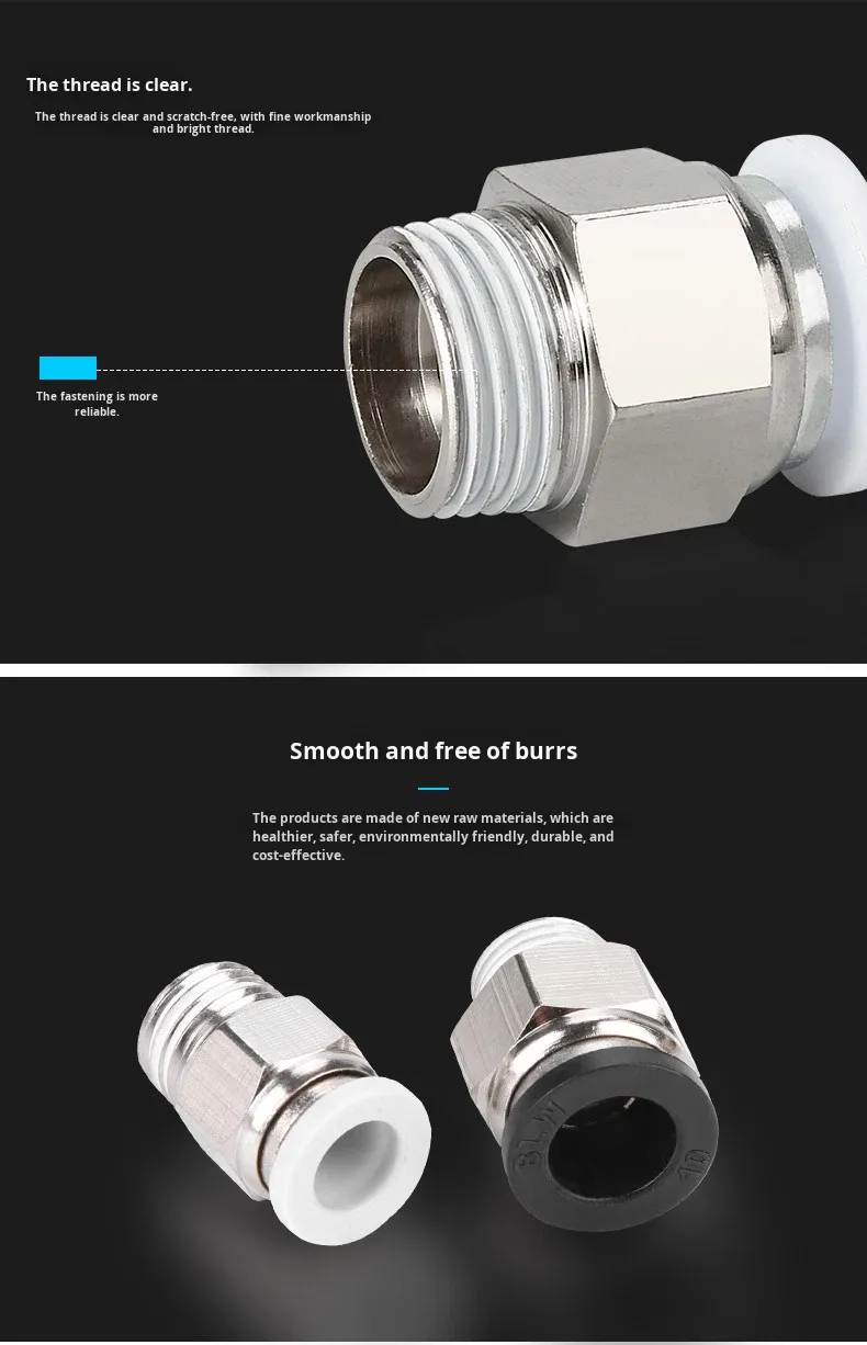 The Other End with Push-In Connection: Adopts a push-in design; directly insert the air tube into the coupling until a "click" sound is heard, indicating proper seating and a secure seal.