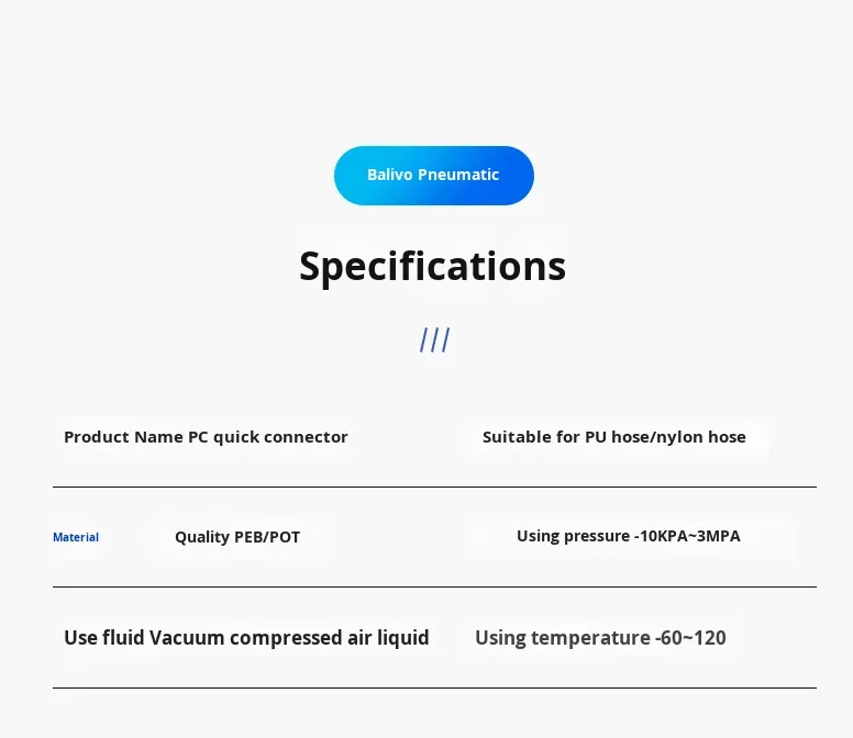 Built-in High-Strength Snap Spring & Sealing Ring: Ensures a firm air tube connection, capable of withstanding a working pressure of 0~1.0MPa and a maximum pressure resistance of up to 1.5MPa.