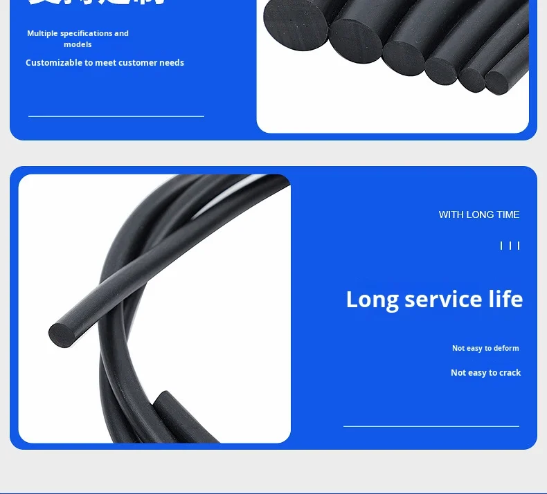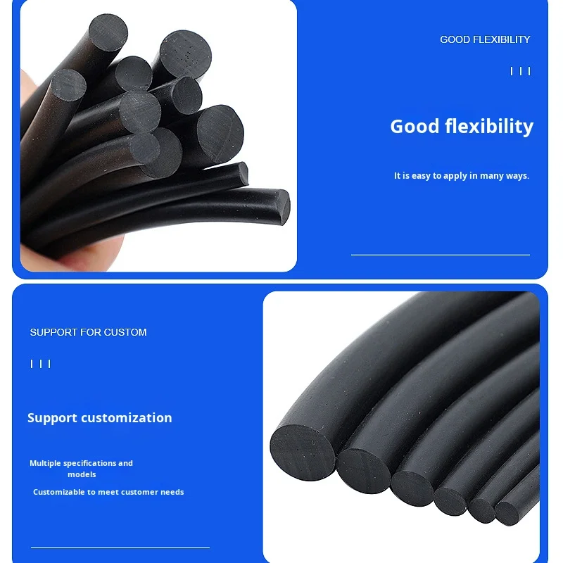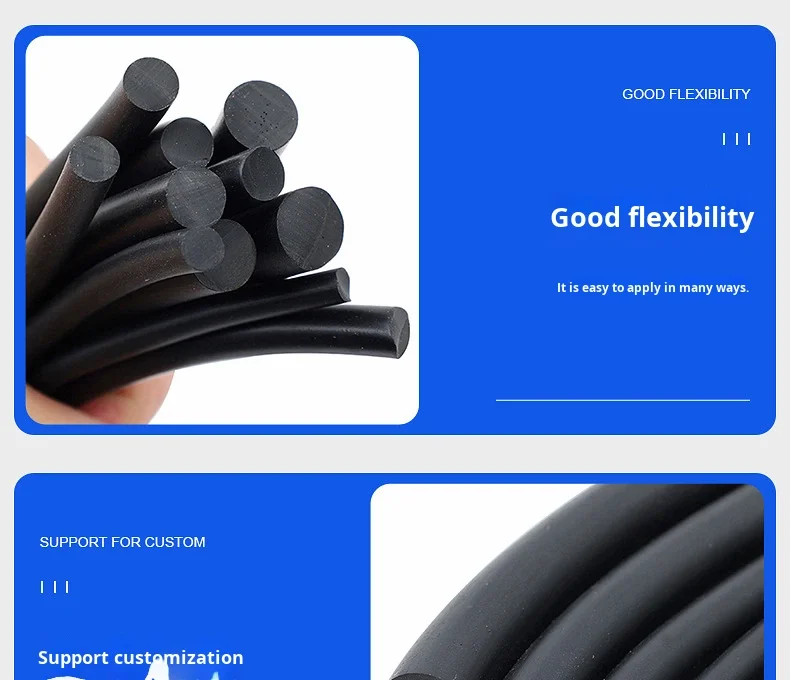 Black Solid NBR Rubber Strip Custom O-Ring Mechanical Shock Absorption Sealing Strip Model 005