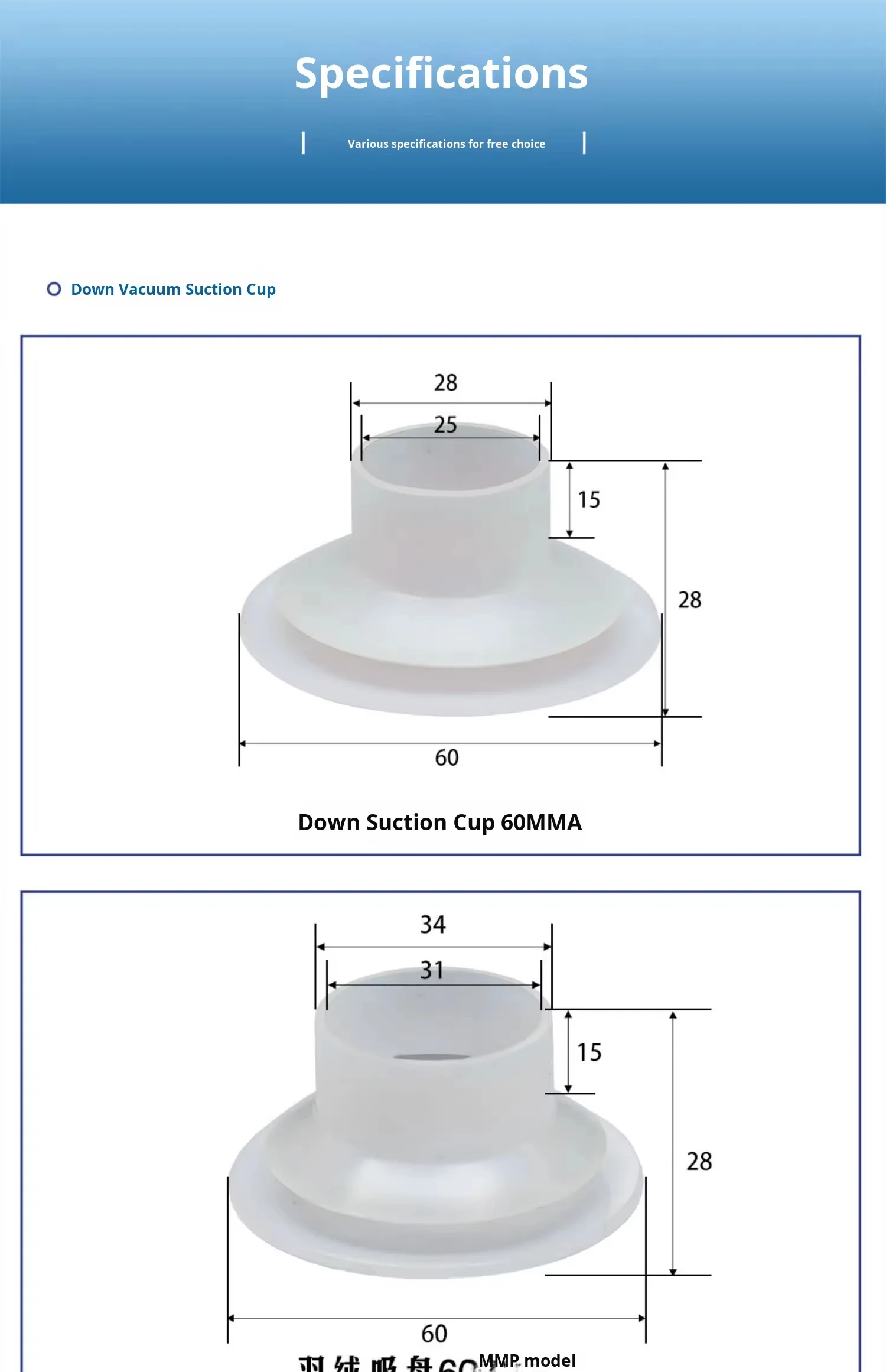 Vacuum Suction Cups for Down - Specialized for Industrial Manipulator Down Filling Machines, 60mm & 84mm, White Silicone