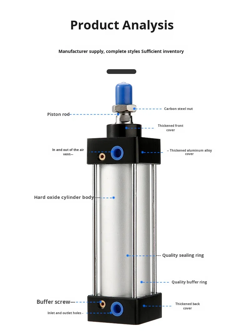 • The cylinder tube undergoes hard anodization treatment, with three-pass honing on the inner wall, ensuring smoothness, wear resistance, and a long service life.