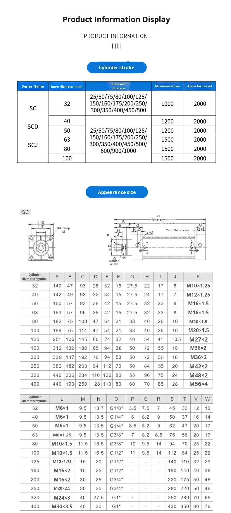 Bore Diameter Range 32/40/50/63/80/100/125/160/200/250mm Standard series to meet different thrust requirements