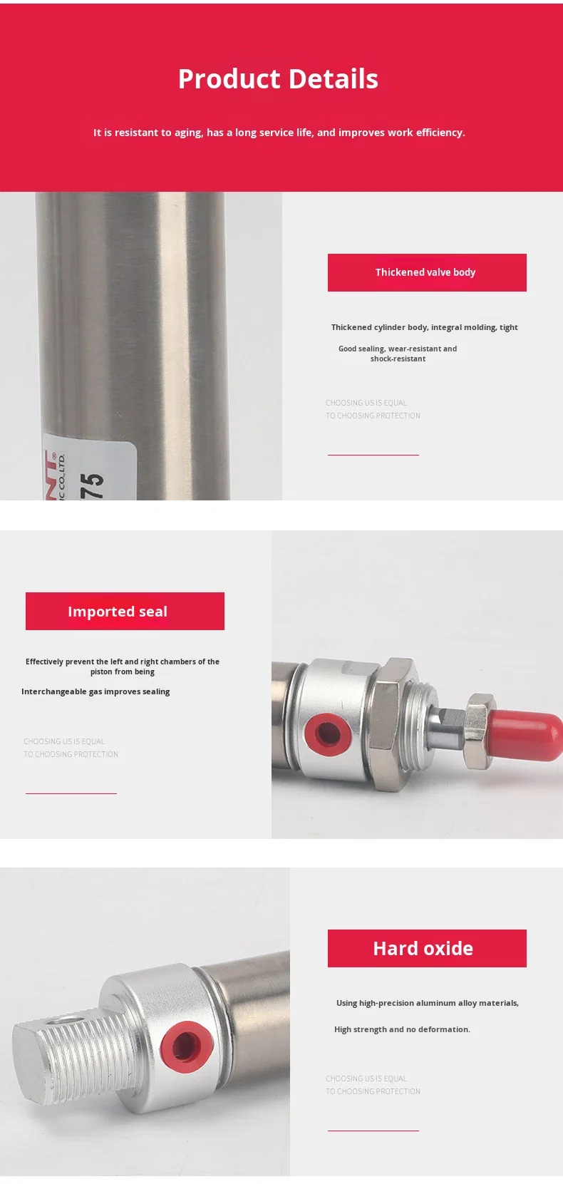 | Operating Pressure | Working pressure range | Double-acting: 0.1–1.0 MPa; Single-acting: 0.2–1.0 MPa | Guaranteed proof pressure: 1.5 MPa (test pressure) |