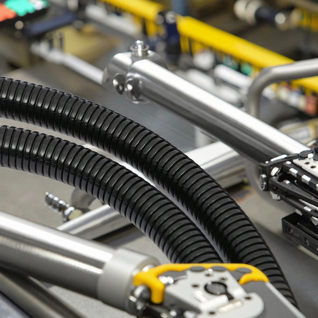 Całkowicie falista konstrukcja charakteryzuje się dużą odpornością na zginanie i plastycznością, umożliwiając swobodne gięcie i kształtowanie bez zatykania się rury ani jej pękania. Doskonale dopasowuje się do ciasnych przestrzeni, zakrzywionych tras okablowania oraz nieregularnych środowisk montażowych w pojazdach samochodowych i sprzęcie mechanicznym.