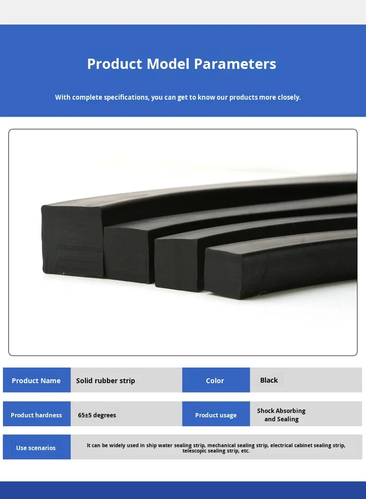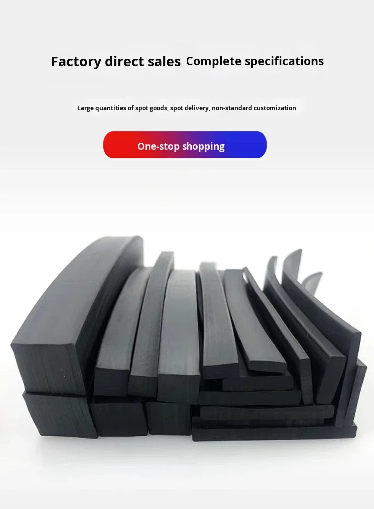 Square Flat Long Hard Wear-Resistant Pressure-Resistant Shock-Absorbing Oil-Resistant Non-Slip Rubber Solid Seal Strip